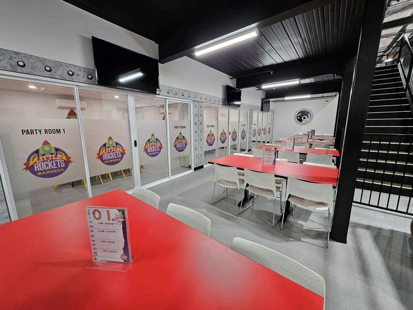 We currently have 3 main offerings Little Rockets Play café, Bazinga & Barossa Ninja- Barossa Laser Tag is still a work in progress Little RocketsPlaycaféisahugeindoorplaygroundwithadesignatedToddler Play area and a playground for older children We have a fully functioning Café with a big and exciting menu that will cater for everyone We have 3 main Party rooms & a 4th being shared between Bazinga & specialise in childrens Birthday parties & family friendly socialevents