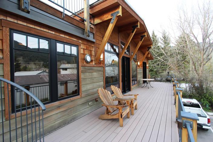 Living at 320 E Broadway – where mountain elegance meets smart investment! Built in 2007 by renowned builder Tennyson Ankeny, this charming Craftsman-style mixed used residential/commercial property features a beautiful 2 bedroom/2 bath condominium with private, abundant decking, and amazing views of Snow King Mountain. This immaculate Craftsman style home has heated concrete floors, a cozy gas fireplace, 14’ ceilings – all just two blocks from bustling Jackson Hole town square.