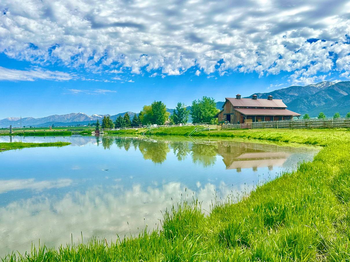 Historically, the ranch has functioned as a working cattle and horse operation, with designated pastures used for hay and grain production, while others provide summer and winter grazing. Near the center of the property lies a 30-acre meadow that stays lush and green year-round without irrigation, making it an excellent horse pasture. Five center-pivot irrigation systems cover the eastern portion of the ranch. West of the main home is a large, spring-fed fishing pond that collects water from smaller streams, eventually forming a substantial creek—a thriving habitat for trout and waterfowl.