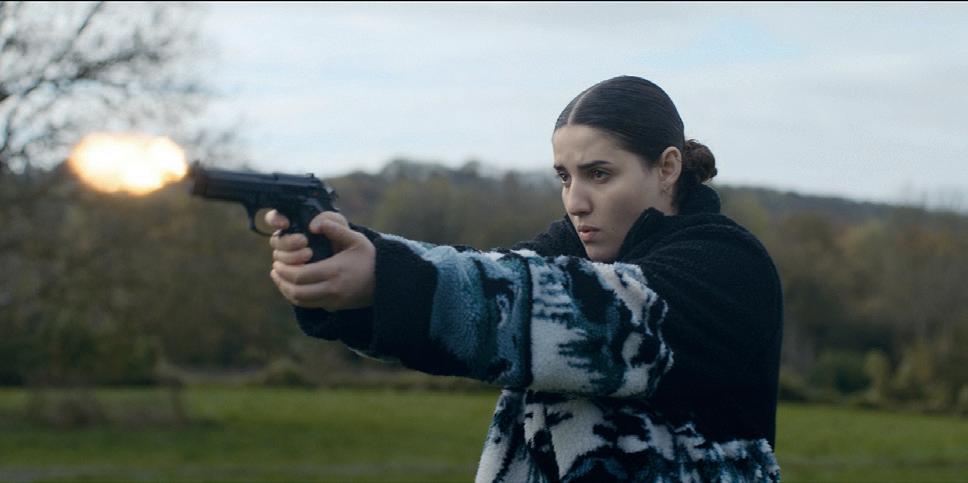 A scene in episode two perfectly describes the on- and o -screen drama we were faced with as a production, and on set as a team. In her disruptive and challenging investigation of her sister’s death, Mia has just shown Ewan a blackmail video of his dead fiancée skinny-dipping with another character, Teddy (played with eloquent but pressurised calm by Kauri Williams), just days before their wedding and her death.