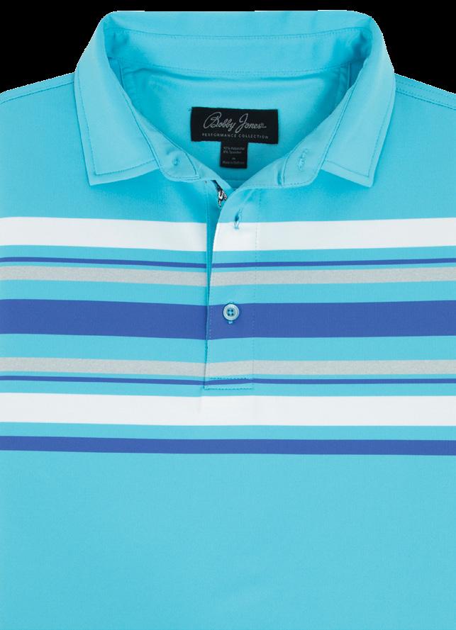 40 | bobbyjones.com BJ232312 I Performance Mini Tonal Feed Stripe Polo Size S-3XL US $94 C $99 FABRICS • 92% Polyester, 8% Spandex 401 Marina Blue 855 Strawberry Ice 539 Orchid Bouquet 993 Summer Navy 459 Sky Blue