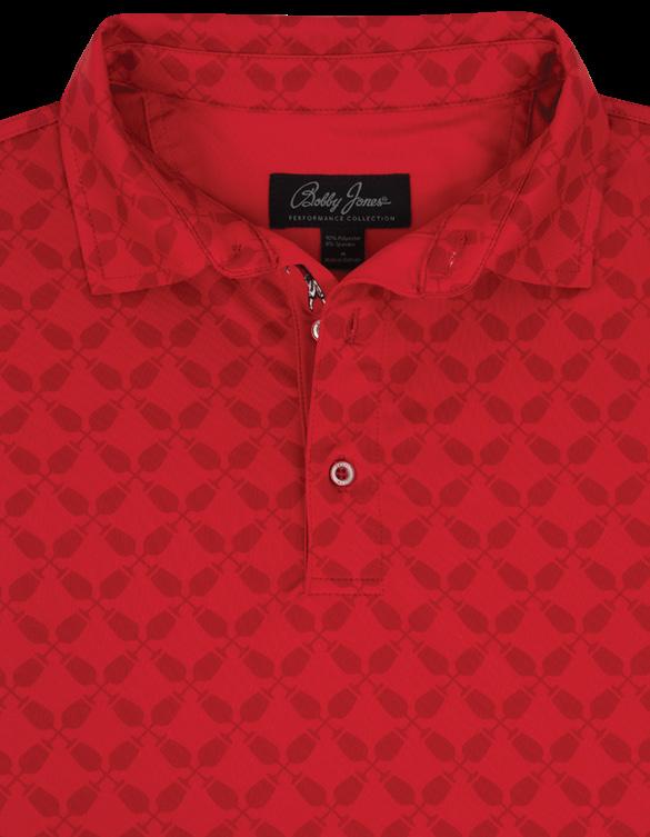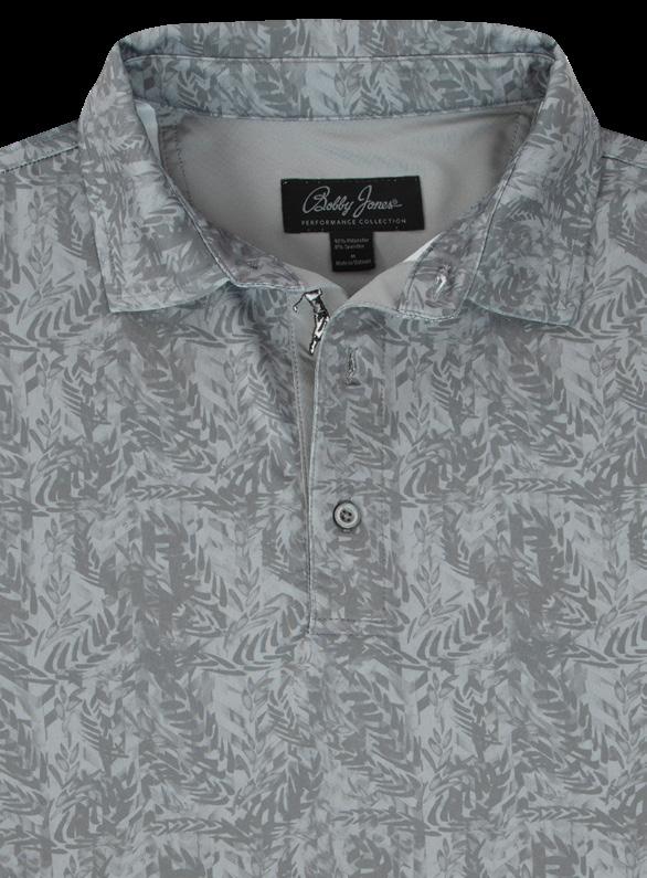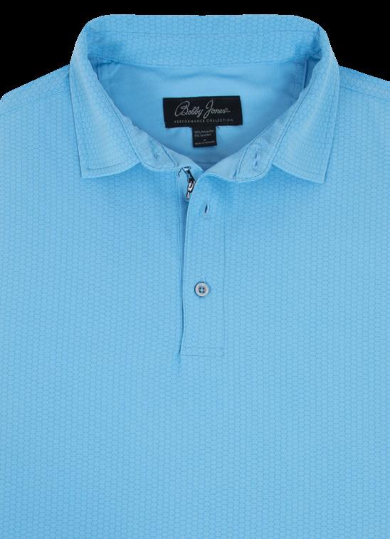 30 | bobbyjones.com BJ232305 I Performance Balata Print Polo Size S-3XL US $94 C $99 FABRICS • 92% Polyester, 8% Spandex 001 Black 459 Sky Blue 582 Cambridge Red 100 White 540 Dahlia Purple 993 Summer Navy 401 Marina Blue