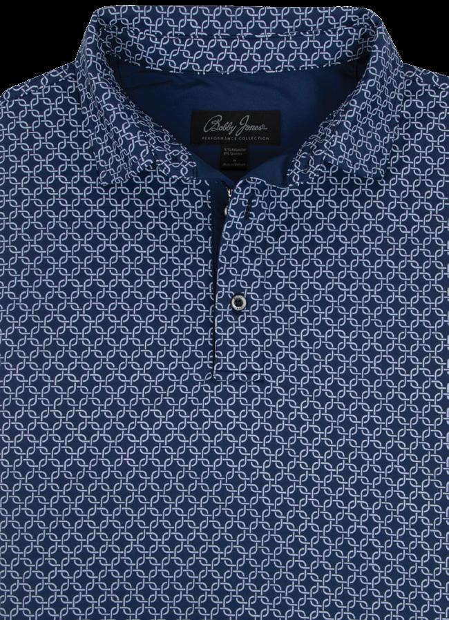 35 BJ232307 I Performance Geometric Print Polo 001 Black 582 Cambridge Red 459 Sky Blue 993 Summer Navy 401 Marina Blue Size S-3XL US $94 C $99 FABRICS • 92% Polyester, 8% Spandex