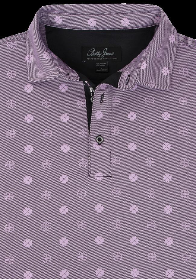 38 | bobbyjones.com BJ232308 I Performance Clover Print Polo 001 Black 993 Summer Navy 459 Sky Blue 401 Marina Blue Size S-3XL US $94 C $99 FABRICS • 92% Polyester, 8% Spandex