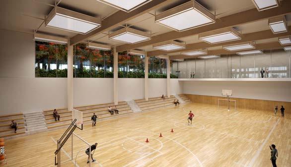 ocupa 28 mil m², utiliza areia clara para reduzir o aquecimento e recria a sensação litorânea no meio da cidade. Ao redor dela, o programa esportivo amplia a experiência graças à instalação de quadras de tênis e beach tennis, ginásio poliesportivo, spa, academia de 2 mil m² e simuladores de esqui e Fórmula 1. A proposta consolida o conceito de clube multiesportivo, em que alto desempenho e lazer cotidiano convivem no mesmo espaço.