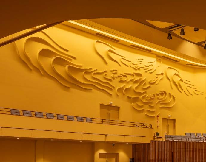A artista plástica Sandra Cinto foi convidada a compor uma nova obra para o teatro: uma escultura tridimensional em gesso, que atua também como peça acústica na sala de concertos.