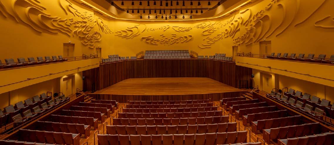 “Para o restauro, os materiais foram escolhidos com atenção, respeitando a estética original do teatro, a exemplo das pastilhas de vidro”, relata Bruna. As intervenções incluíram, ainda, sistemas de climatização e tratamento acústico, adaptando o espaço às exigências de conforto e performance dos dias atuais.