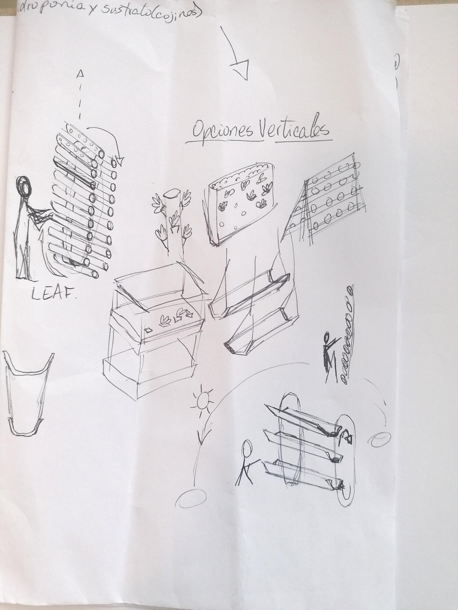 En los módulos de hortalizas y fresas se puede implementar el LEAF System, que es un sistema adaptable de agricultura piramidal que le permita al agricultor aumentar el volumen de producción gracias a la verticalidad. Este podría medir unos 3 m de altura y consta de canaletas con la pequeña inclinación necesaria para un cultivo hidropónico pero que también permita introducir las bolsas de sustrato necesarias para otro tipo de cultivos, por ejemplo, las fresas.