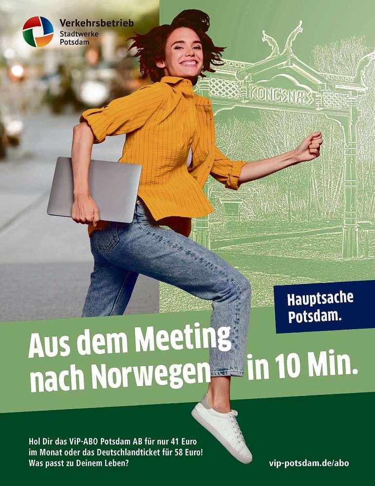 Die nächste IN POTSDAM erscheint am 26. April 2025. Redaktionsschluss ist am 26 März 2025 Sie möchten sich in der nächsten Ausgabe präsentieren oder planen für Mai/Juni 2025 etwas Besonderes? Dann freue ich mich auf Ihren Anruf: 0331/2376148 oder eine Mail an daniela.mohr@pnn.de