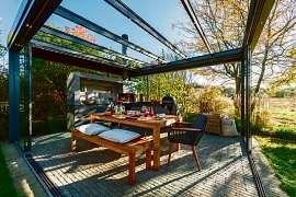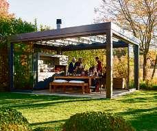 Unterschiedliche Designs, Farben,Materialienund Ausstattungsmöglichkeiten:Solarlux-Terrassenüberdachungen aus AluminiumoderHolz/Aluminiumfügen sich idealindie bestehende Hausarchitekturein.Das reine Terrassendachschützt zuverlässigvor Regen. Ergänzt um senkrechte,verschiebbare Glaselemente wird auseiner Terrassenüberdachung einGlashaus, dasrundumvor Wind undWetterschützt.Dächerund senkrechte Elemente sind exaktaufeinander abgestimmt undbis inskleinsteDetaildurchdacht.