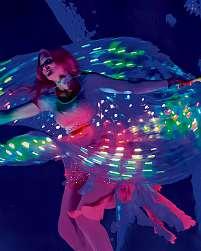 auf der Meiereiwiese statt. In dunkle Sphären entführen das Mutter, Tochter, Enkelin-Gespann Katharina, Anna und Nellie Thalbach, wenn sie aus ihrem »Gruselkabinett« erzählen. An beiden Tagen treffen Flanierende auf eine Mischung von Kleinkunst, Musik, Varieté und Lesung, die beim Spaziergang auf festlich erleuchteten Parkwegen an verschiedenen Orten erkundet werden kann. Akrobatik und Humor verbindet etwa Aramelo in der Trampolin-Show. Vor dem Orangerieschloss bewegt sich die hypnotische Lufttänzerin Arco an einemzwölfMeterhohenfreistehenden Bogen,dermitLuftgefülltist.DasStreetTheater Oakleaf ist als Riesenrad und KarussellaufBeinenimParkunterwegs.