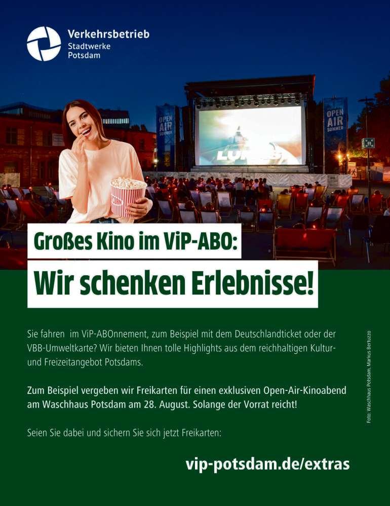 Die nächste IN POTSDAM erscheint am 31. August 2024. Redaktionsschluss ist am 29 Juli 2024 Sie möchten sich in der nächsten Ausgabe präsentieren oder planen für September/Oktober 2024 etwas Besonderes? Dann freue ich mich auf Ihren Anruf: 0331/2376148 oder eine Mail an daniela.mohr@pnn.de