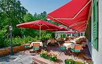 Wenn man entscheiden müsste, wo es im Sommer in Potsdam am schönsten ist, dann läge das Café Eden (Bild 1) im Park Sanssouci weit vorne. Gleich hinter dem Kuh-Tor und der Meierei, ein Ludwig-Persius-Bau, im romantischen Charlottenhof-AbschnittdesParksmitBlickaufdieRömischen Bäder, findet man das kleine Biergarten-Café. Auf der Fläche am Weiher stehen Bierbänke, Tische, Liegestühle im Schatten der alten Bäume; die Karte bietet eine kleine aber feine Auswahl vom Grill, Eis, Kuchen und Getränke für paradiesische Sommertage und -abende.