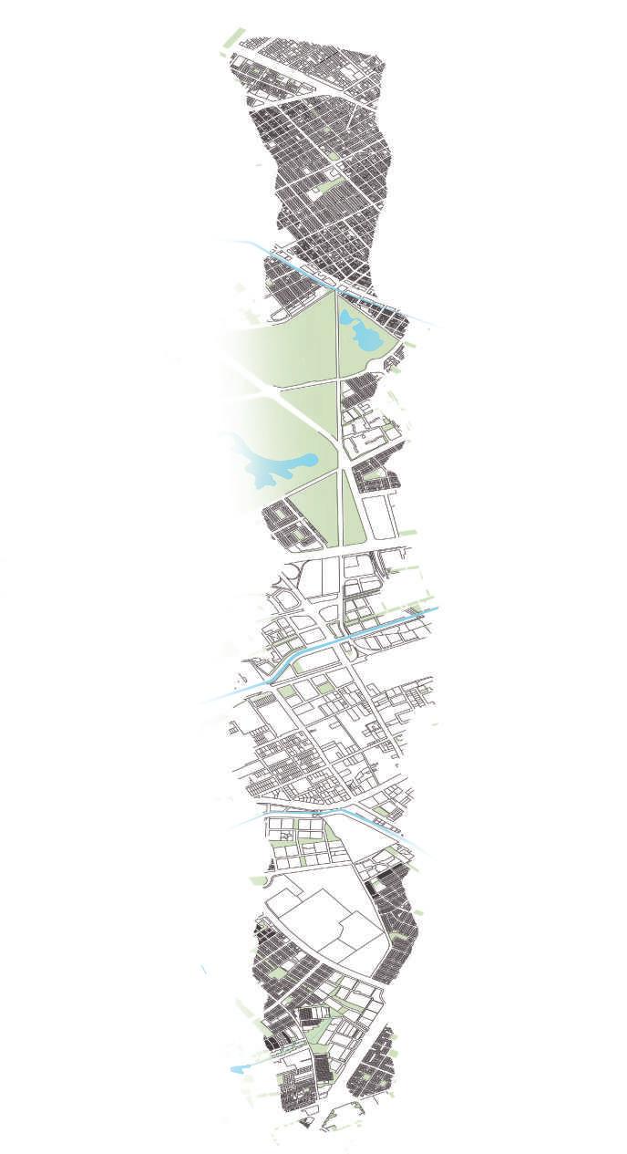 Estrategias de intervención En el sector identificamos dos tipos de parcela la no profunda, la profunda y las grandes parcelas; predomina las parcelas profundas en el sector, se evidencia esta tipologia de parcela en gran cantidad de manzanas en el tramo principalmente sobre el centro del tramo y sobre manzanas muy rectangulares, las no profundas se observa que se encuentran en manzanas con parcelaciones irregulares y sobre accesos y las grandes parcelas que son los principales equipamientos del sector. El plano de llenos y vacios nos muestra un trazado lineal, se observa la continuidad de las principales calles y carreras del sector como lo es la calle 72- 68 y la carrera 24 sobre el tramo por el acto impacto de colectividad urbana.