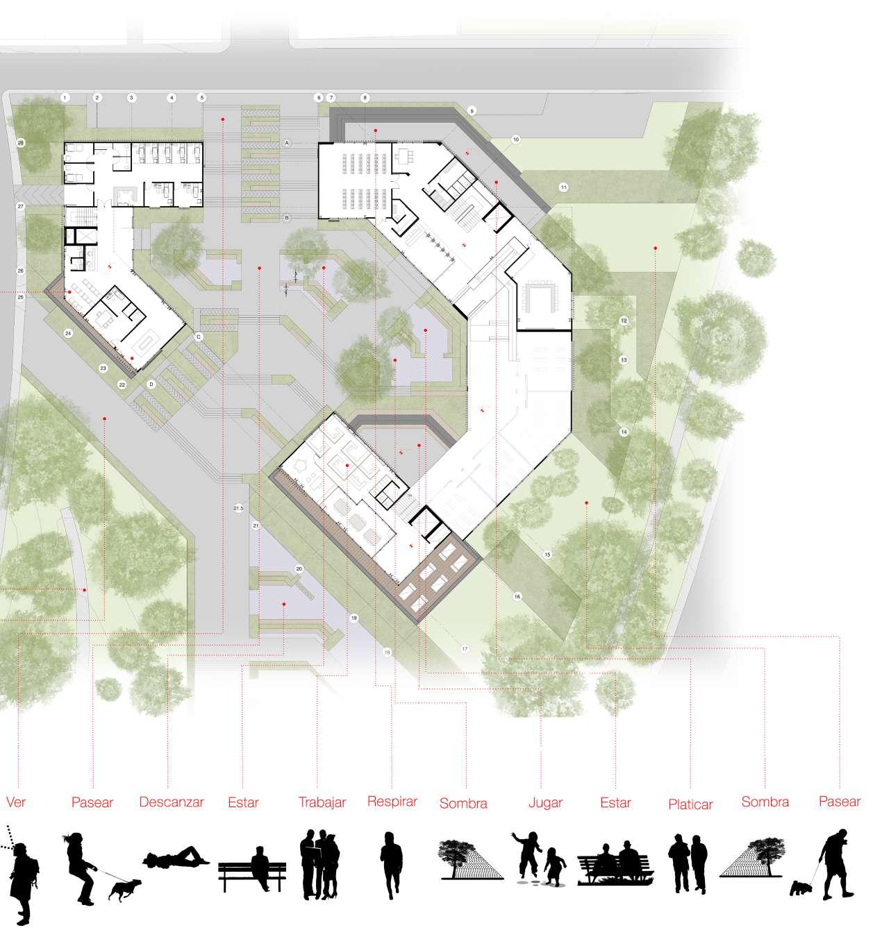desarrollar espacios óptimos para dichas actividades. Por lo tanto, se articulan con usos compartidos y espacios abiertos.
