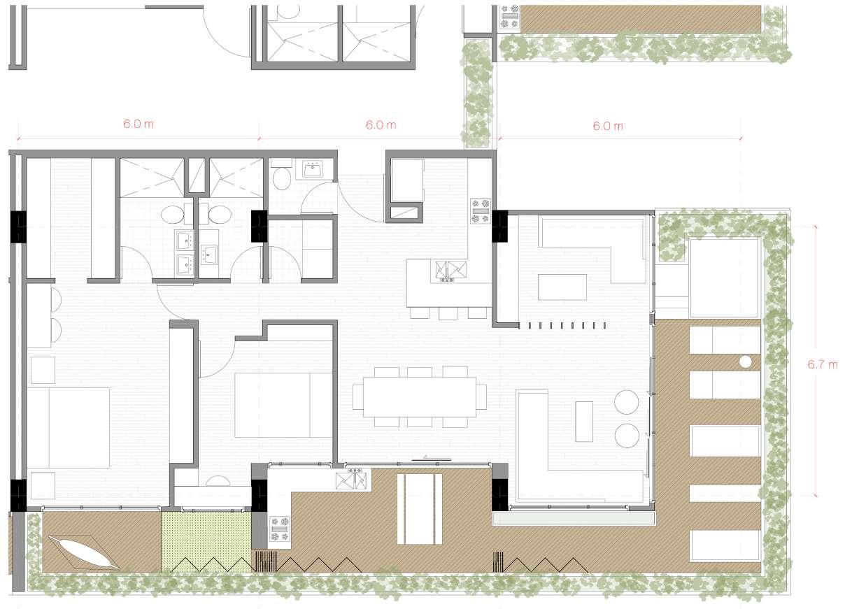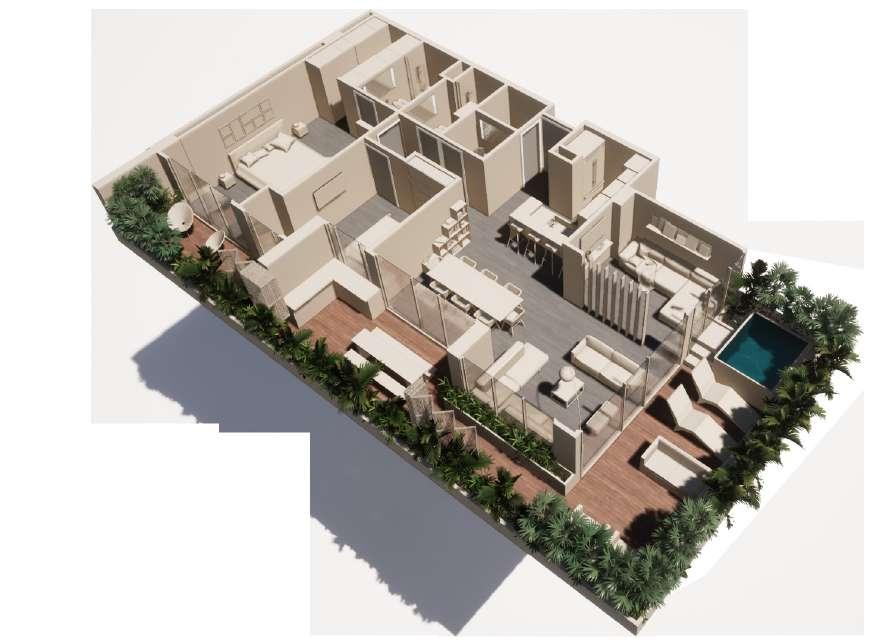 Detalles Tipologías de apartamentos Tipología A 2 Cuartos 3 Baños ComedorSala PatioCocinaEstudiode ropas Terraza JacuzziBBQ Tipología C 2 Cuartos 3 Baños Sala PatioCocinaEstudiode ropas Terraza JacuzziBBQ