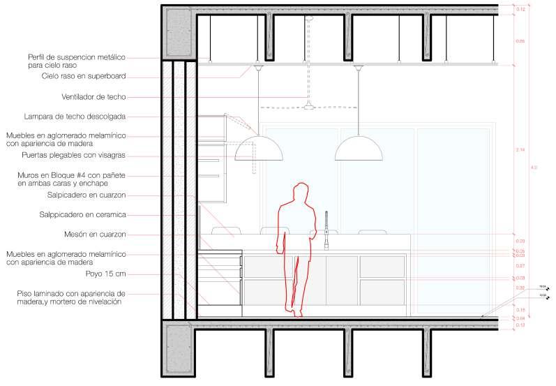 Detalles Cocina Cocina TipoTorre de ComedorLavaplatoshornosauxiliar de 4 puestos Muebles en aglomerado melamínico Mesones en cuarzon