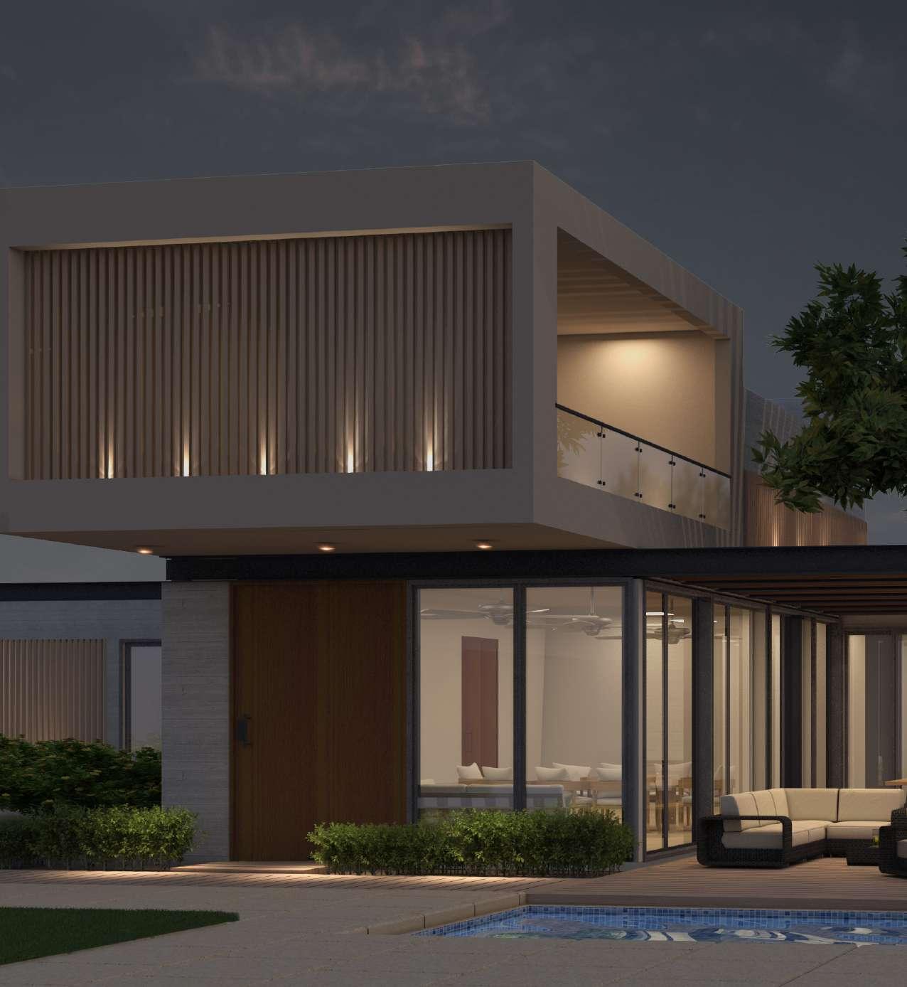 Render Nocturnoexterior Proyecto Inspirado en Residencia Yeoju, Corea del sur