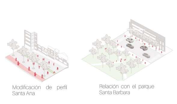Estas dinámicas fragmentan el sector, y por consiguiente las actividades se ven separadas por zonas dentro del territorio. El proyecto busca por medio de intervenciones urbanas de diferentes escalas reactivar las zonas de baja actividad, y expandir la atracción de usos diversos en el sector. Lo anterior se desarrolla por medio de una red de espacio público, y un proyecto de renovación sectorizado. La proyección se da por medio de distintas escalas de estrategias, que se manifiestan en el territorio juntas para la construcción de un paisaje intensificador de dinámicas a nivel metropolitano.