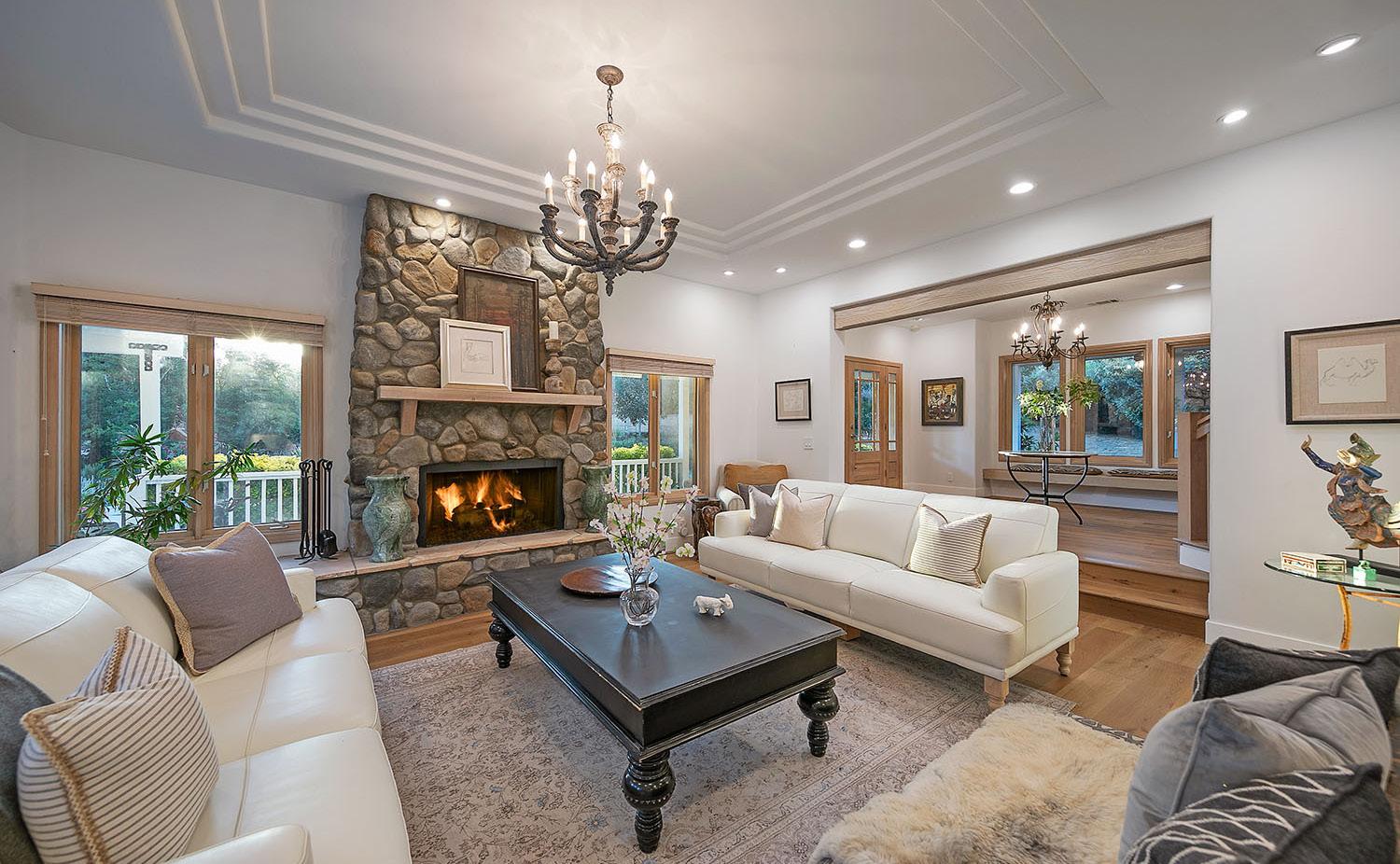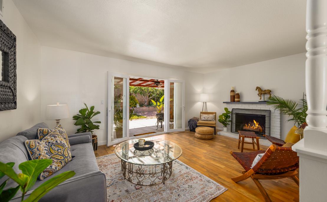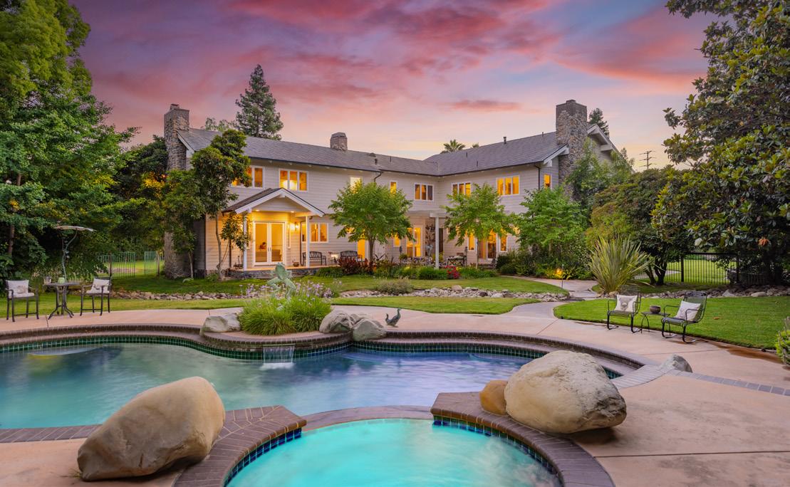 This beautiful private oasis spanning over two acres features a spacious guest house, a pool, a large covered outdoor entertainment area with kitchen, a tennis court, and a horse pasture. The charming 3br/2.5ba hacienda-style main home has stunning natural light throughout, vaulted ceilings, saltillo tiles, 2 stone fireplaces and serene views of the private park-like grounds with mature trees. Includes a lush courtyard patio with a fountain and an oversized garage/studio with a full bathroom which is perfectly suited for an ADU.