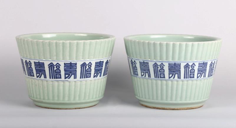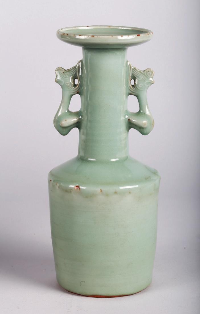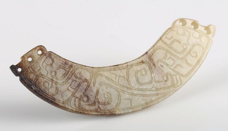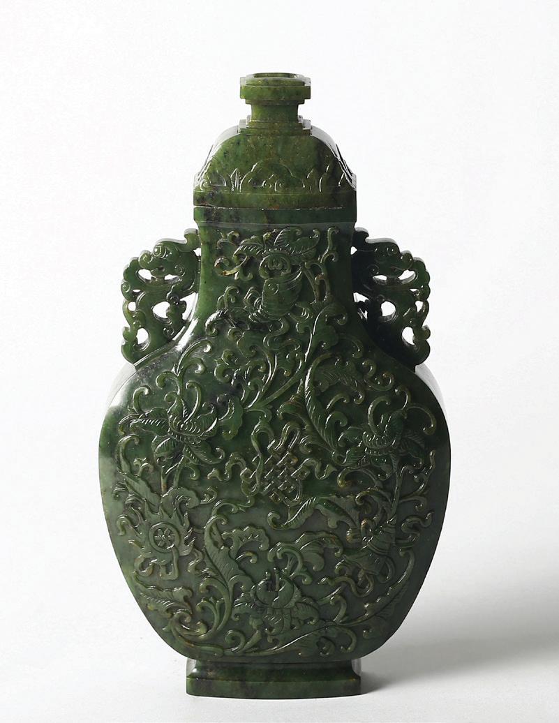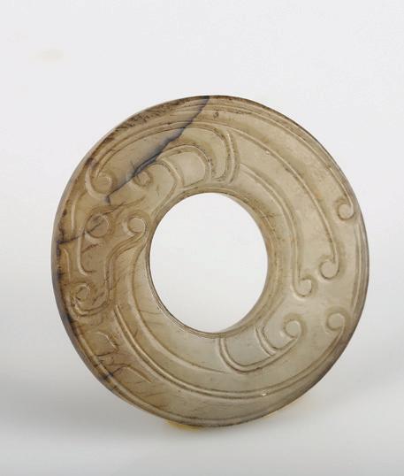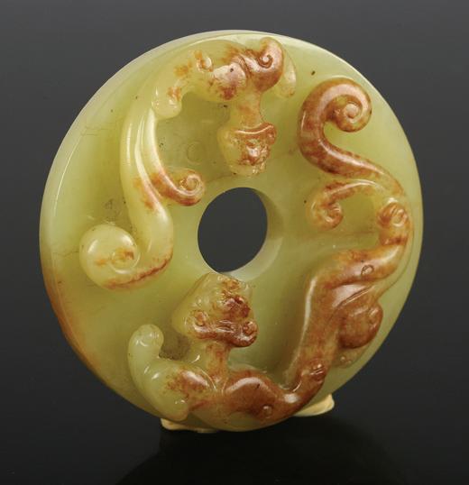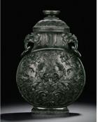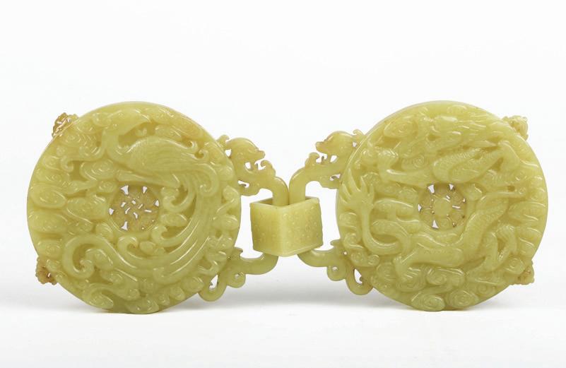 Of circular section, the rounded sides supported on a short straight foot, flanked by a pair of openwork handles in the form of a chilong, the stone is of even polished white tone.