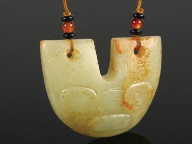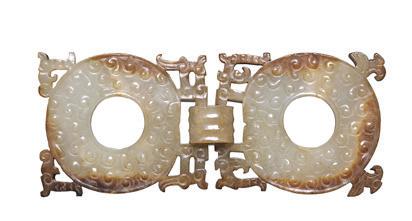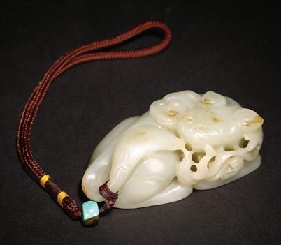a Chinese White Jade ‘t Win Gourds’ Pendant