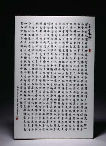 A ‘Zhu Bolu’s Maxims’ Calligraphy Porcelain Plaque. Republic period.