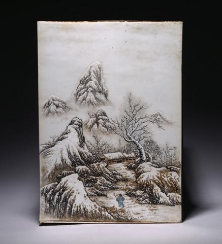 清 粉彩雪景圖瓷板畫