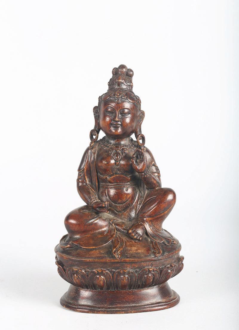 清 白玉童子持花杯