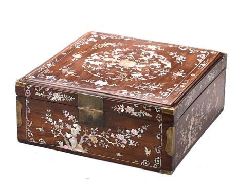 a Chinese zitan inlaid BoX and Cover