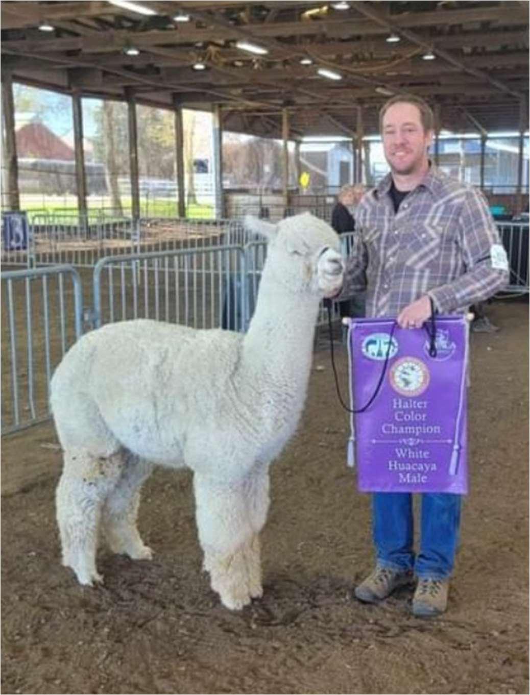 Alpaca,Huacaya,Herdsire(Male)|Proven|White AOA#36038398|DOB:8/6/2021(3yrs)