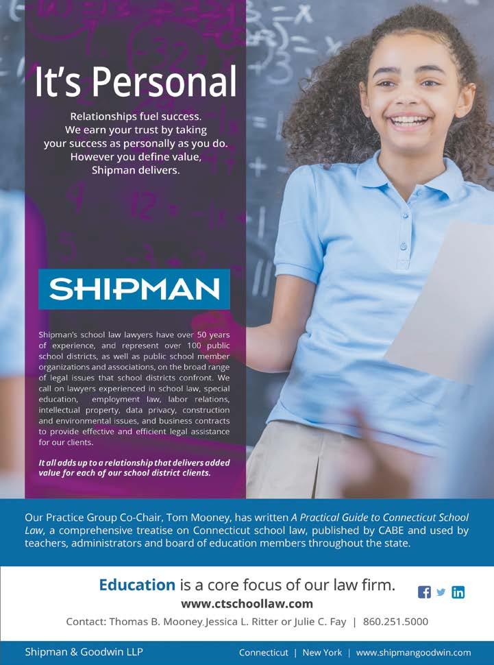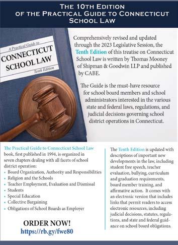 Leonard Lockhart (Windsor) was reelected CABE President for a second one-year term. After election, he stated, “Thank you Windsor and CABE for supporting my reelection to continue the work of providing highquality public education through every board of education member in Connecticut. As CABE President, I’m focused on every child in the state and the country through association with NSBA. We will continue lobbying state and federal governments and provide professional development on policy, curriculum, budget, legal, superintendent and staff relations all with civility and collaboration.”