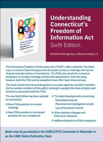 Attorney Sommaruga is the author of “Understanding Connecticut’s Freedom of Information Act” (6th Edition 2024), which has just been released and is available through CABE.