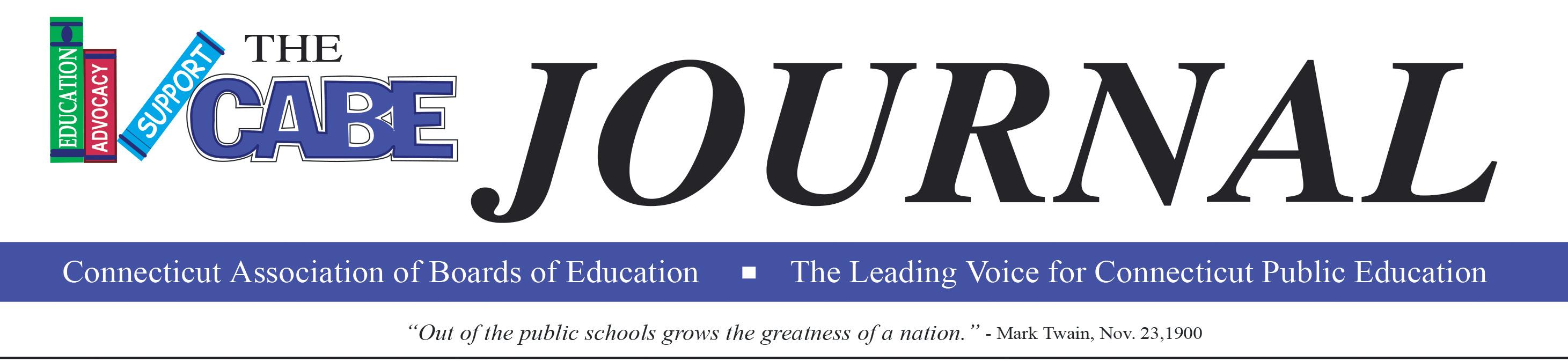 POSTMASTER: Send address changes to The CABE Journal, CABE, 81 Wolcott Hill Road, Wethersfield, CT 06109-1242. CABE membership dues include $30 per person for each individual who receives The CABE Journal. The subscription rate for nonmembers is $75. Association members dues include a subscription for each Board Member, Superintendent, Assistant Superintendent and Business Manager. The companies and advertisements found in The CABE Journal are not necessarily endorsed by CABE.