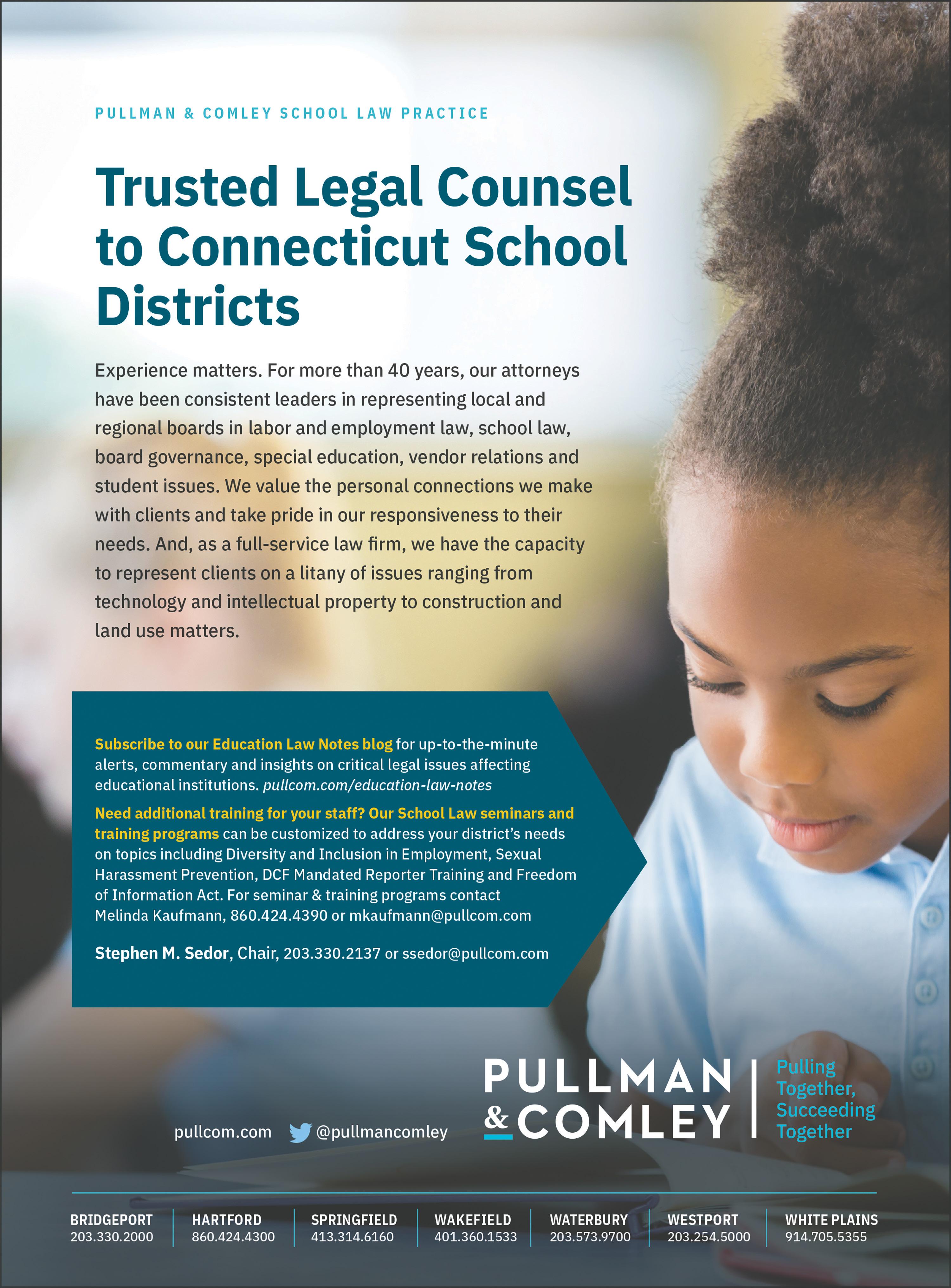 Attorney Thomas B. Mooney is a partner in the Hartford law firm of Shipman & Goodwin who works frequently with boards of education. Mooney is a regular contributor to the CABE Journal. Shipman & Goodwin is a CABE Business Affiliate.