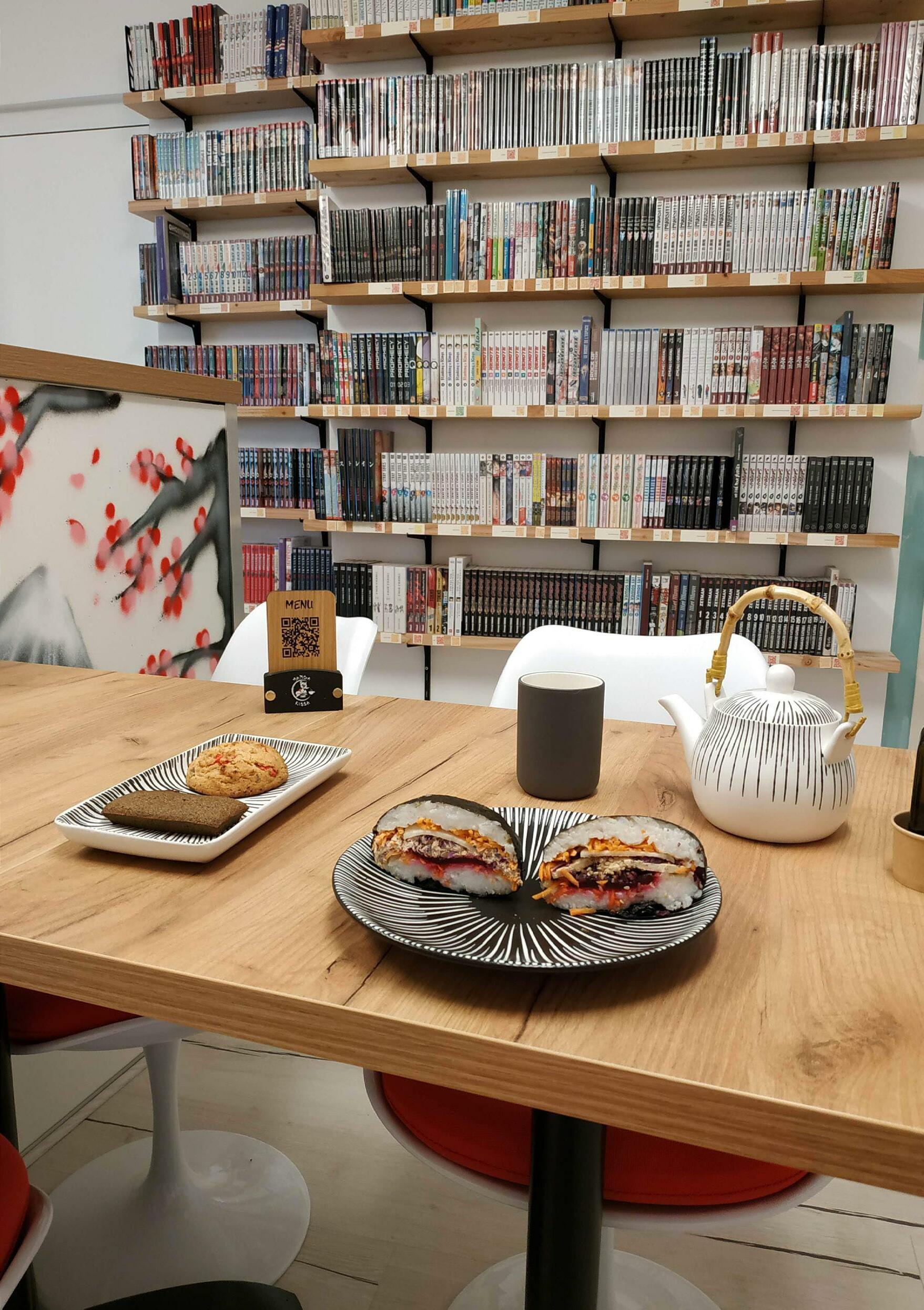 Dans la boutique, les amateurs de mangas peuvent profiter de 4 200 mangas à lire en consommant sur place. À l’entrée, un espace boutique, avec des accessoires et une épicerie fine proposant des produits japonais comme des bières, de la farine de riz, des sauces, des nouilles…