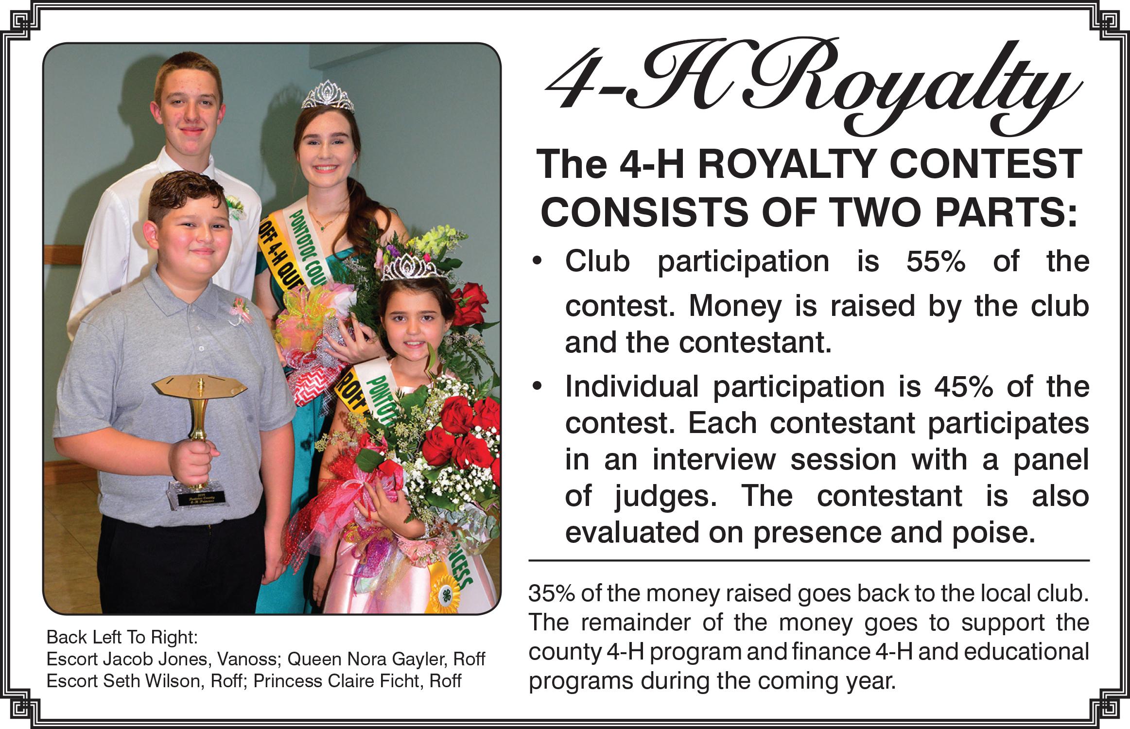 THE 4-H ROYALTY CONTEST CONSISTS OF TWO PARTS: