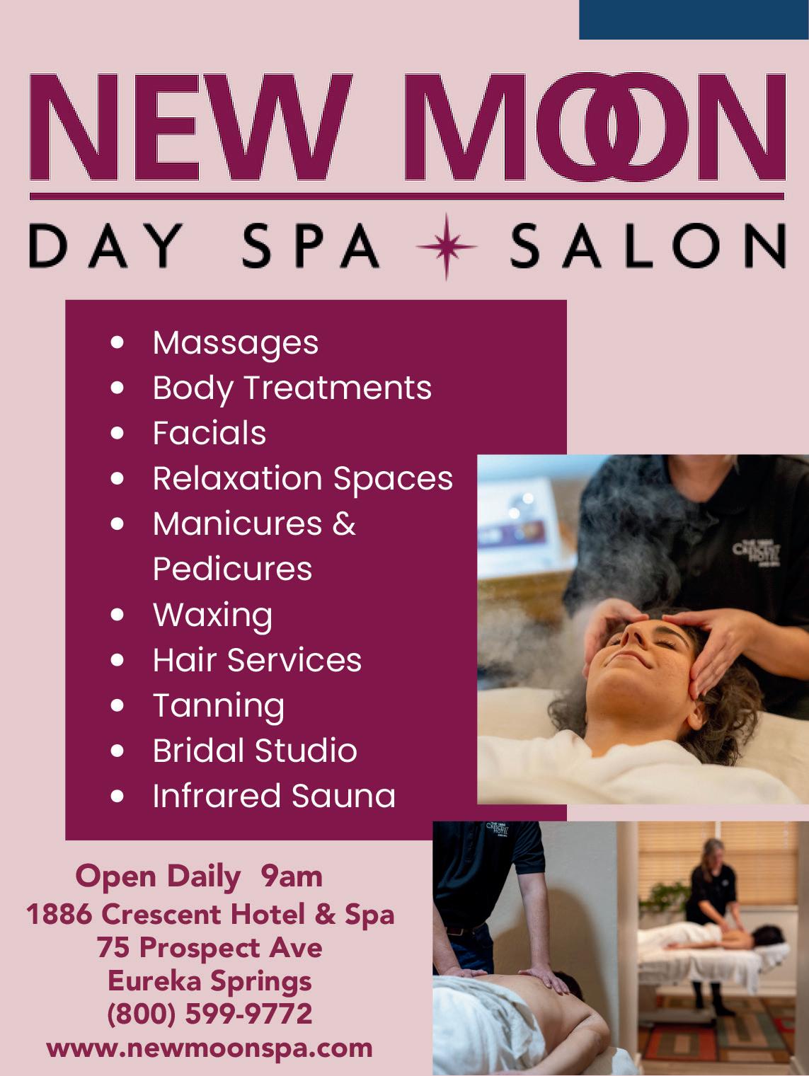 Whether you’re just visiting Eureka Springs or you’re blessed enough to live here, there’s nothing like a little self-care, and there are a couple of fantastic options right here in town at the New Moon Spa & Salon and Spa 1905.