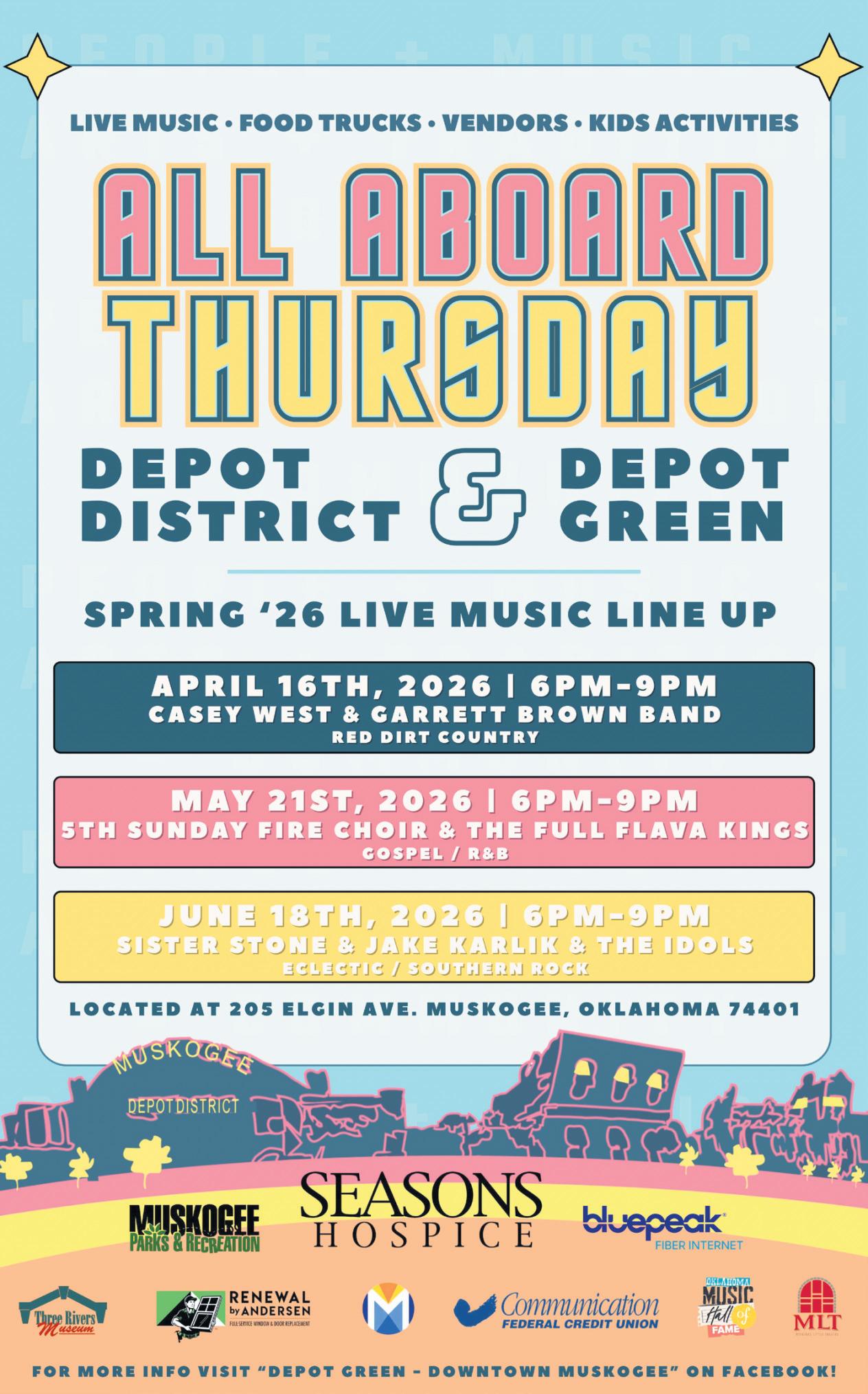 June 18, All Aboard Thursday @ Depot Green, Muskogee, OK