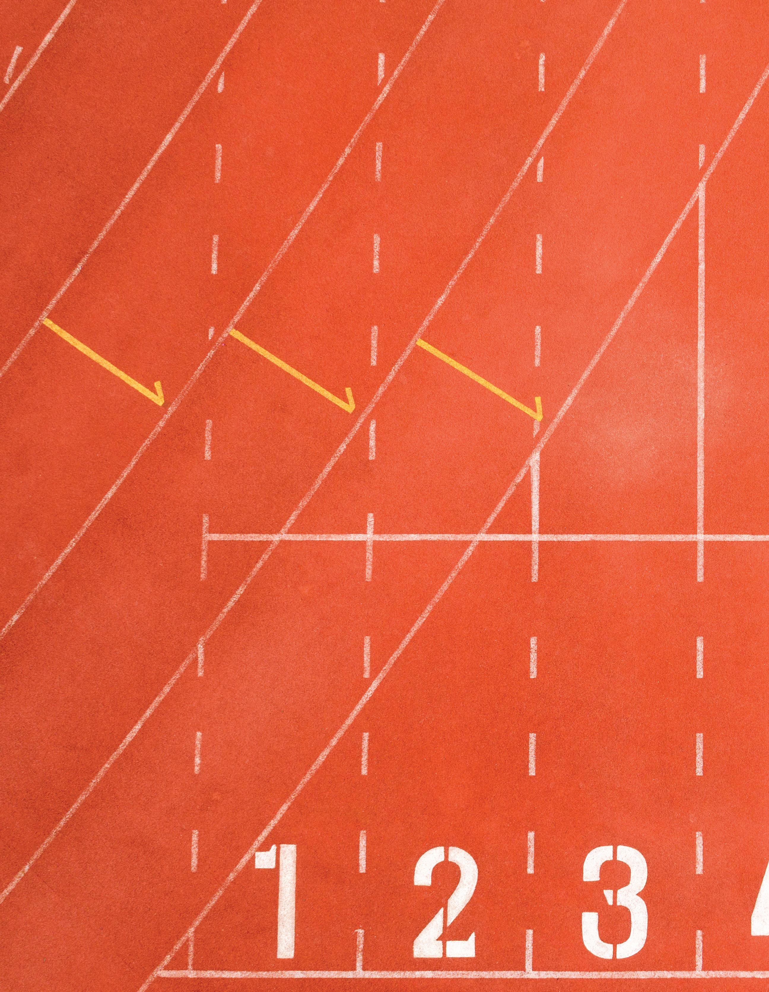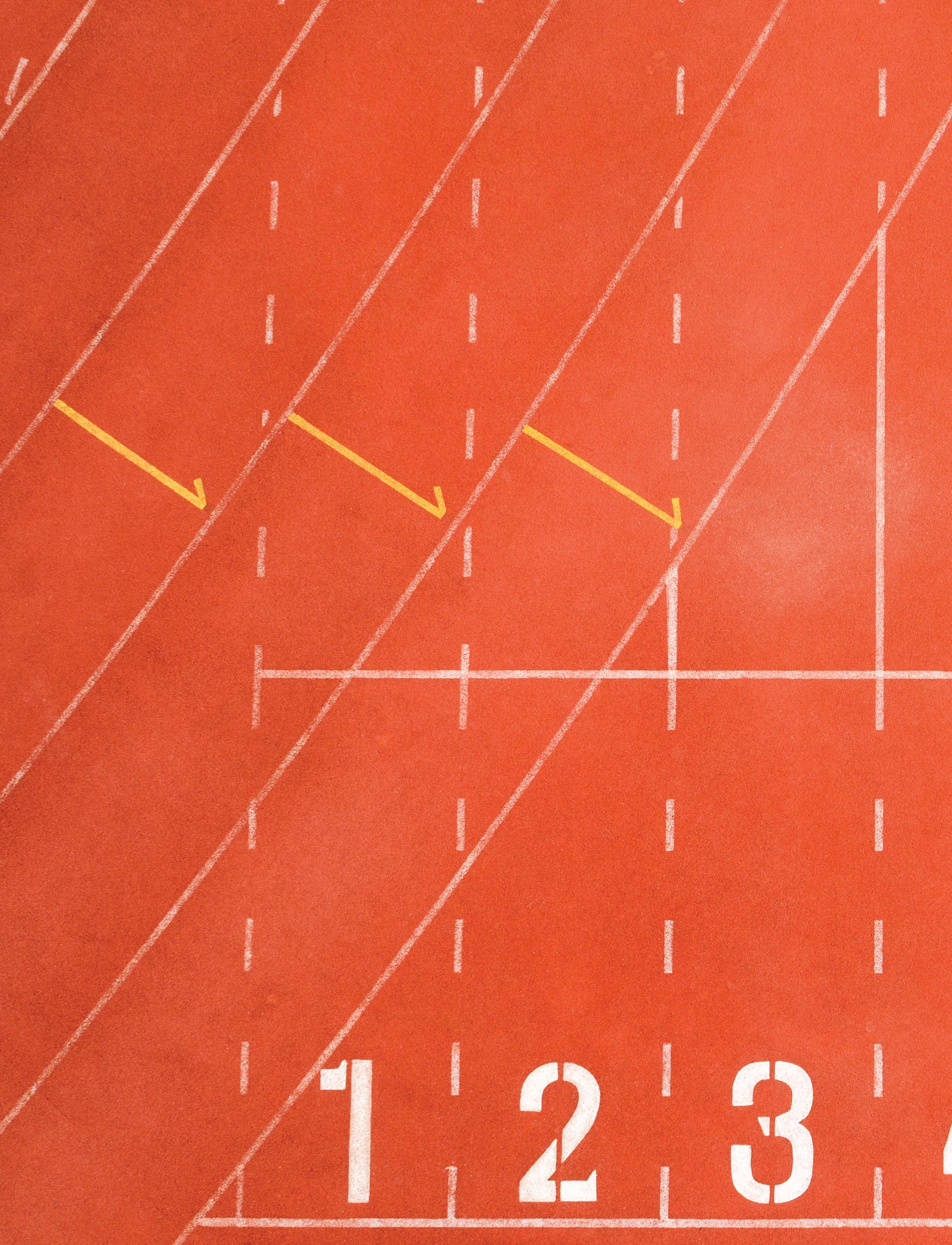 first 400-meter track. Others followed, but many kept their old tracks and remarked their relay passing zones, finish lines, hurdle placements and staggered starting lines.