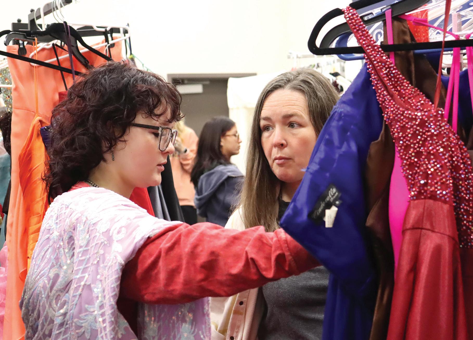 Shoppers at Prom on a Penny took their time looking for inexpensive formal wear. Photo by Halli Resinger