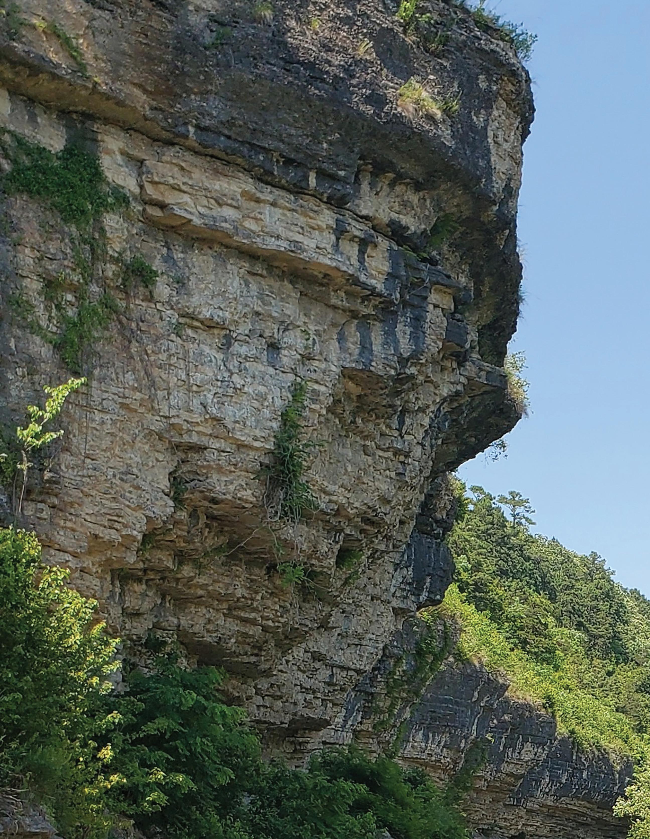 On top of Hanging Rock Bluff are cabins from before statehood.