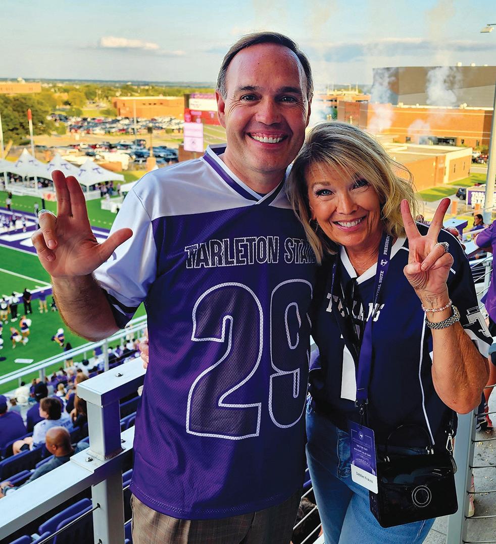 Touchstone Ranch owner Debra K. Knauss and Tarleton president James Hurley at a recent Texan football game.