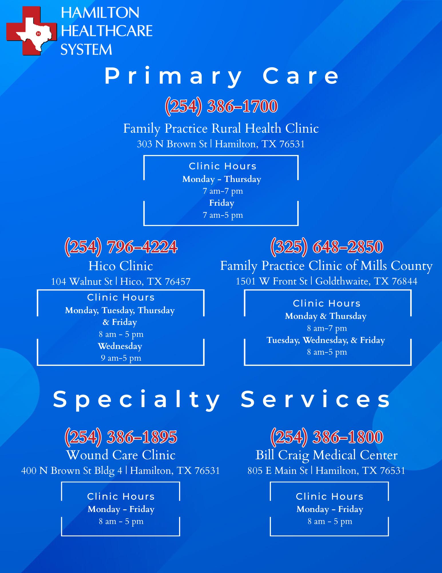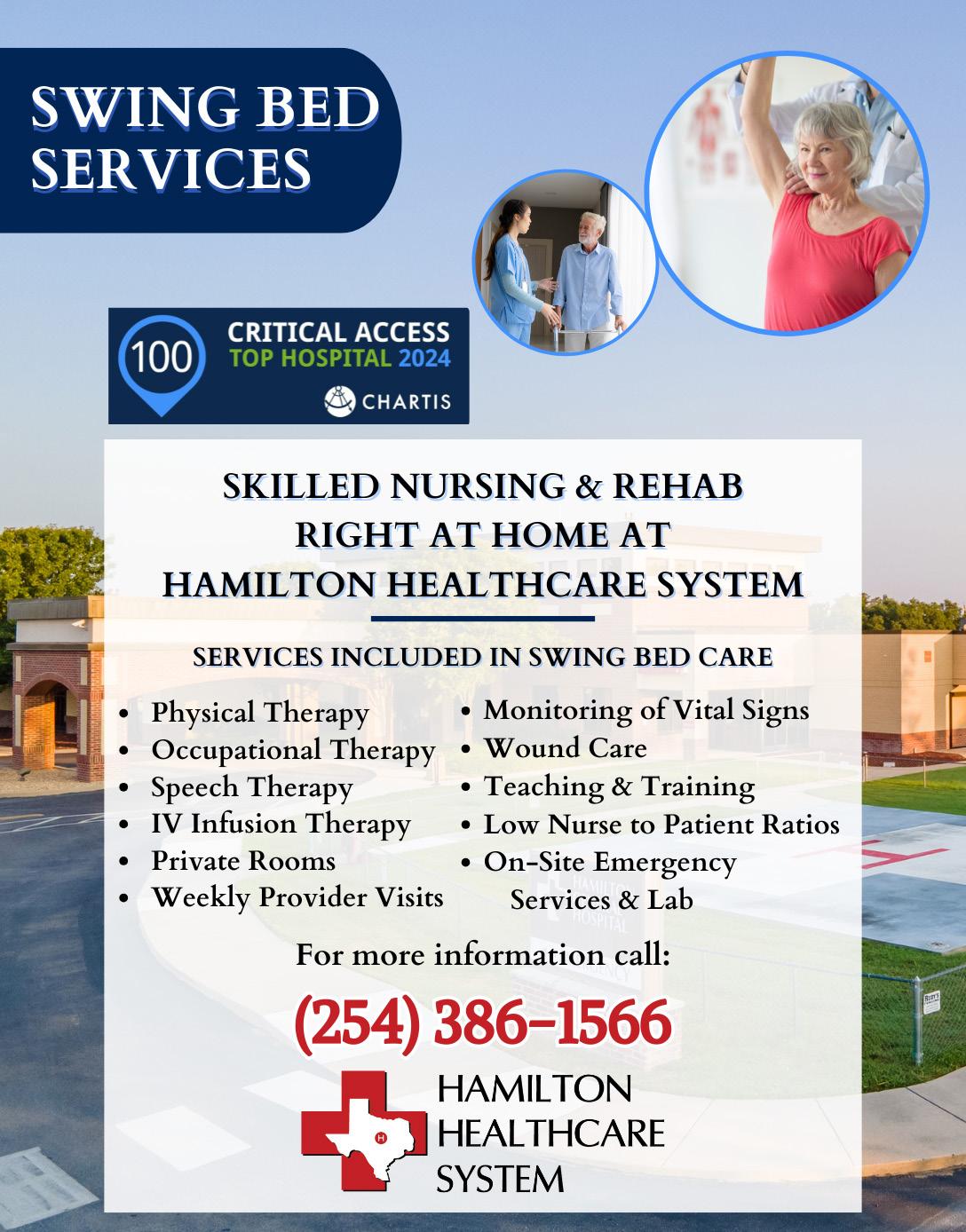 In 2018, Hamilton General Hospital converted to a 25 bed critical access hospital and re-started the swing bed program.
