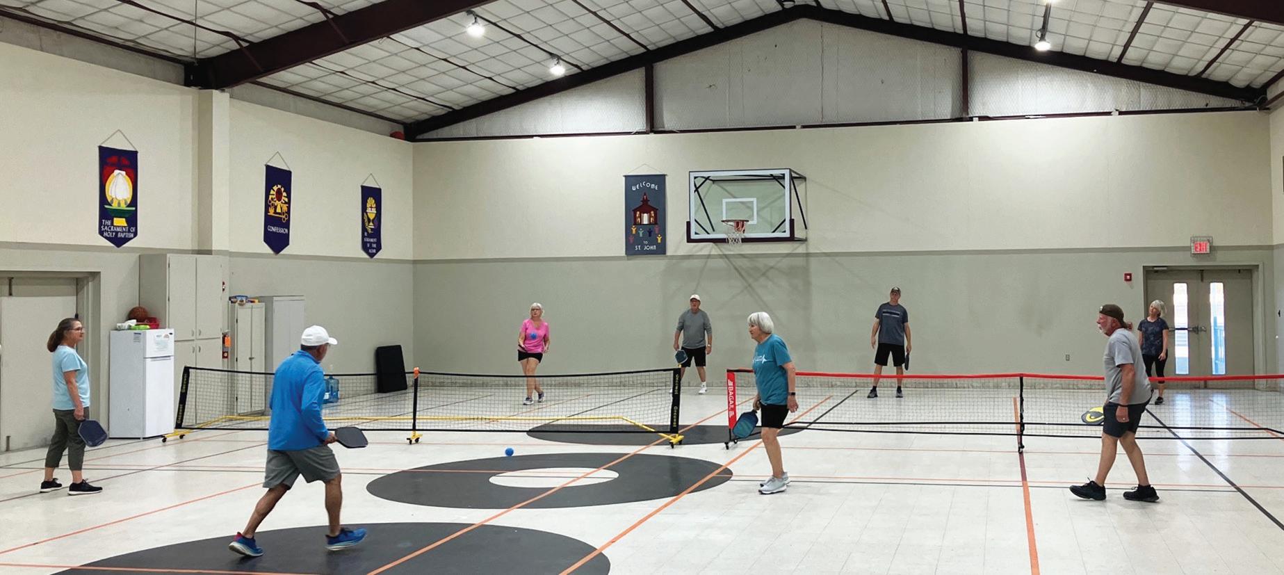 Members of the Hamilton Pickelball Club take to the court in a recent practice. Founded two years ago, the the club fosters an appreciation for the sport that is growing in popularity across the nation.