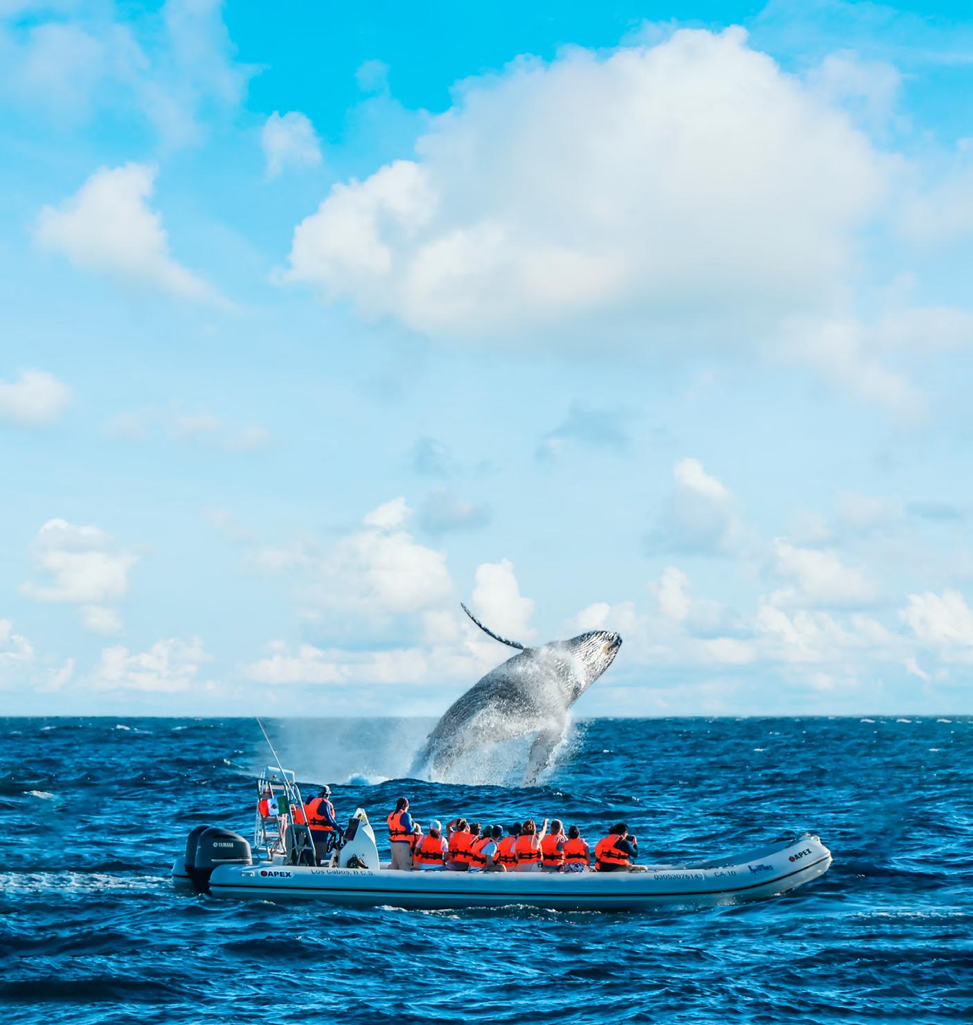 WITNESS THE MAJESTY OF HUMPBACK WHALES IN STYLE ON OUR LUXURIOUS CATAMARAN, COMPLETE WITH EXPERT GUIDES AND ONBOARD DELIGHTS.