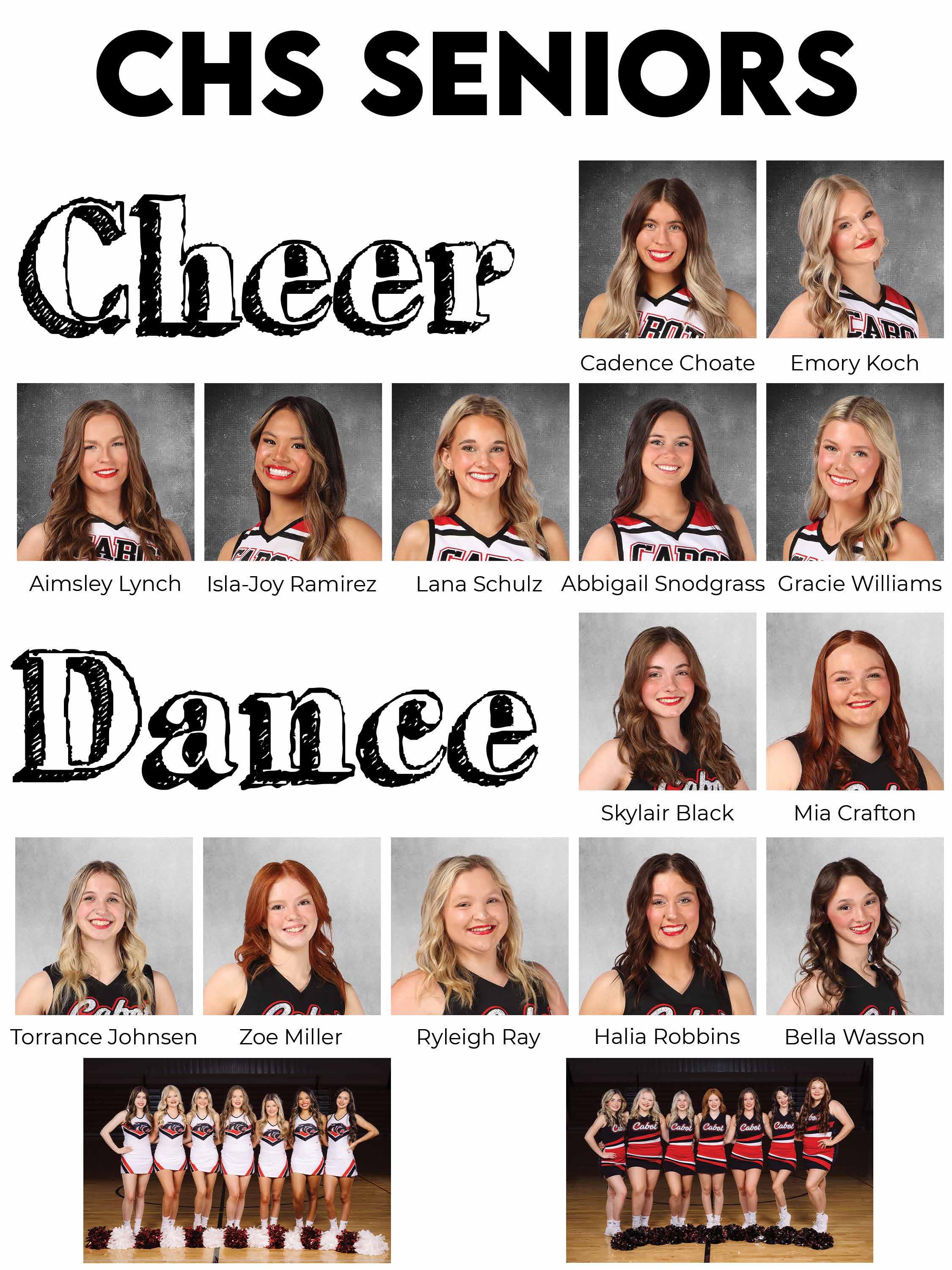 Thank you for choosing Cabot Dance Academy to be your dance studio home. We have loved watching you girls grow into talented dancers but more importantly amazing young ladies. You have been a part of "us" since you were little girls and EACH of you is a very special member of our dance family. You girls are loved by your peers, your littles, and your instructors, and we are all looking forward to being a part of your Senior Year! This will be a season filled with many "lasts", but even more special memories. We plan to especially cherish the ones with "us" ... Your C.D.A. Dance Family.