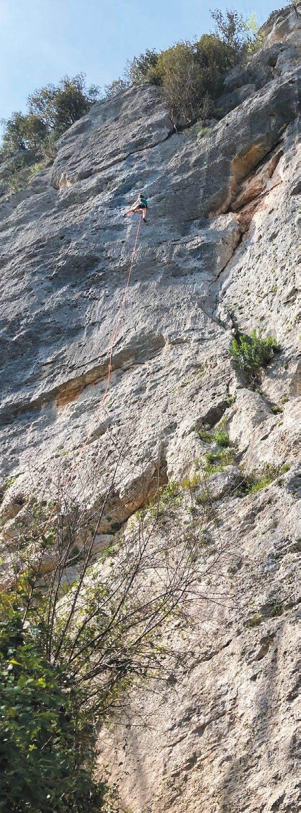pensable topo (792 pages, 1 042 grammes tout de même) peut être emprunté aux campings ou mieux, acheté sur place partout. Nos voies préférées au secteur Avancorpo Boragni : Fuori Tema/Another Spit in the Wall, fissure de 30 mètres en 6A+ – attention à ne pas prendre la 6B par accident ; Giropizza : jolie dalle avec quelques doigts en 6A ; Chi vola vale : 6B de 40 mètres avec pas dur au pied de l’arbre, attention au vol ; pour vous en remettre, Vista mare avec vue sur mer à la fin.