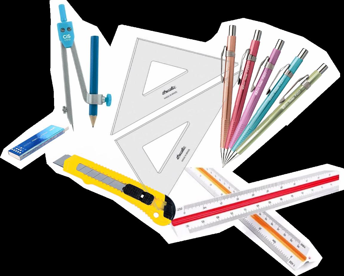 - Lapiseiras (0,3/0,5/0,7/0,9) (Aconselhamos comprar do 0.3 ao 0.7, a gente quase não usa 0.9)