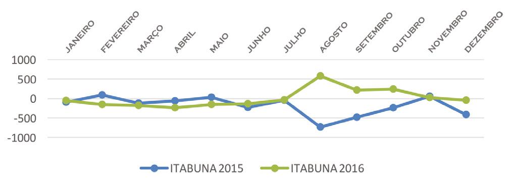 Em Itabuna, registrou-se um saldo positivo de 143 novas empresas, no ano de 2016. Porém, esse valor é ainda bem inferior ao saldo do ano de 2015 que foi de 374. Ou seja, em comparação com o ano de 2015 houve uma retração no saldo de estabelecimentos empresariais, ao longo de 2016, da ordem de 231 unidades.